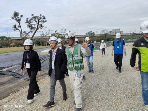 Site management in Yunlin County has notched up another success story! The “Dong Ren Housing”social housing turn-key project in Huwei Township has won a gold award in the non-public works category of the “2024 Good Air Outstanding Business Initiative Awards (好空氣企業優良行動獎)” organized by the Ministry of Environment (MOENV) in a demonstration of Yunlin County’s outstanding performance in site environmental management. To both recognize and promote examples of best practices, the MOENV invited environmental protection agencies from 22 counties and cities throughout the country to gather in Yunlin on 20 November for the “Observation and Construction Affairs Symposium on Site Environmental Management Outstanding Initiative Gold Class Site and Outstanding Site Control in Regional Development (工地環保管理優良行動獎金獎工地及區域開發優良管制工地觀摩暨營建工程業務座談會).” The attendees were also given on-site tours of “Dong Ren Housing” and “Huwei HSR Sports Park (Athletics Field and Warm-up Field) Construction Project” to showcase the two model sites for environmental management.