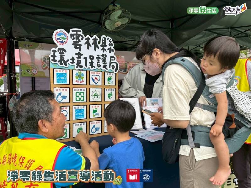 🎯雲林縣環保局於現場設置宣導攤位,結合 #環保標章翻翻牌與 #環保集點APP,透過趣味互動讓民眾認識綠色消費與低碳行動♻️📱