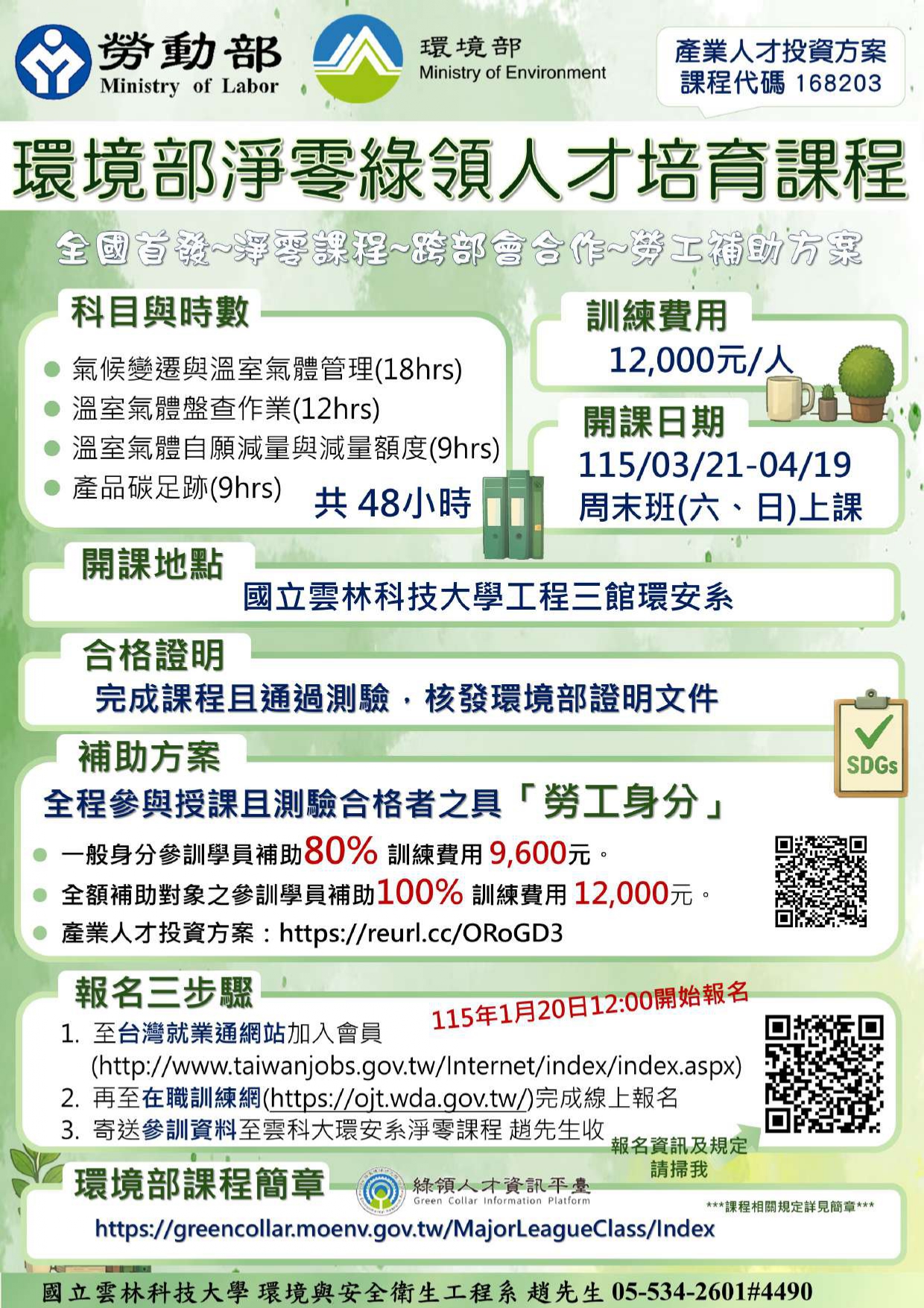 環境部淨零綠領人才培育課程-國立雲林科技大學
