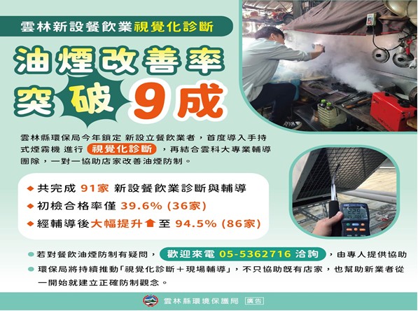 『雲林縣首創視覺化診斷 餐飲油煙改善率突破九成』