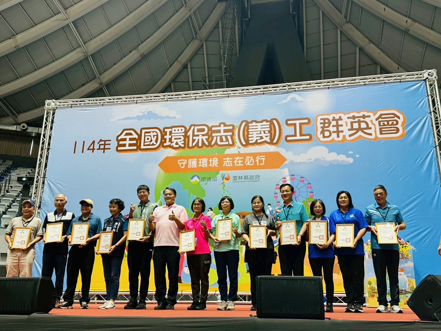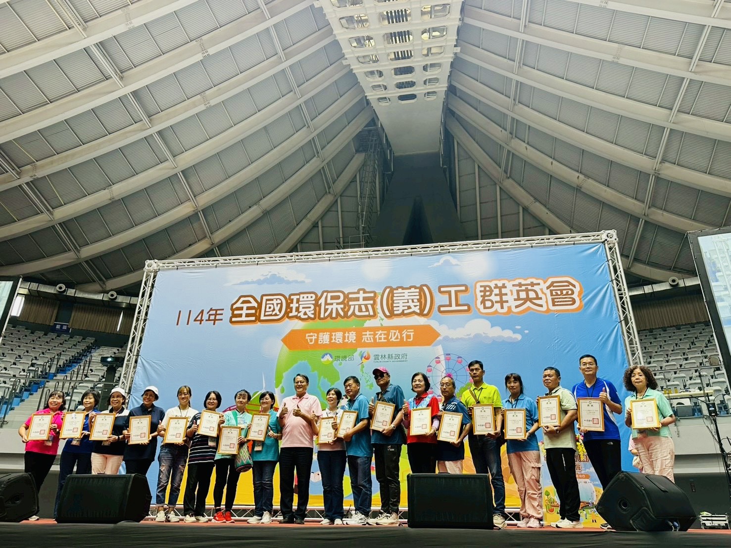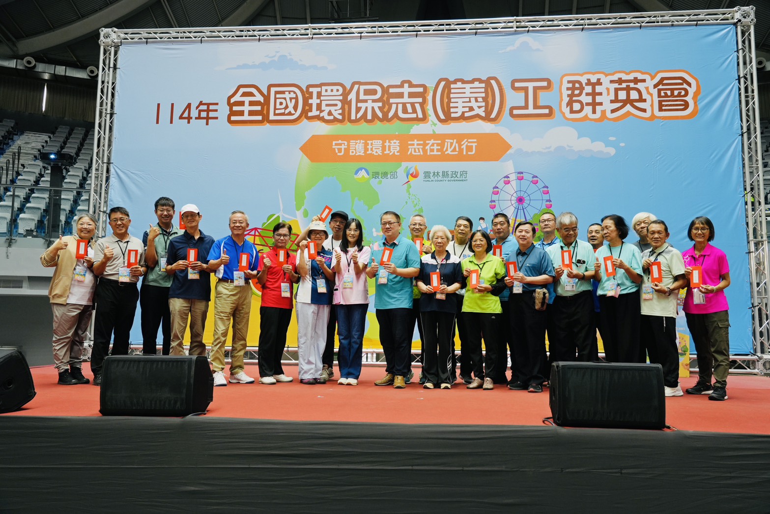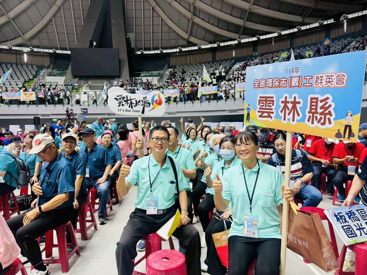 環境部及雲林縣政府11月1日在雲林縣立體育館盛大舉行「114年全國環保志(義)工群英會」,讓平時熱心參與環保事務的志(義)工們趣味一下,展現活力四射的一面,環境部彭啟明部長及雲林縣長麗善特別親臨會場幫全國環保志(義)工加油打氣,並表揚各縣市推薦的34位模範環境教育志工,感謝他們長年以來的奉獻與堅持。來自22縣(市)超過2,000位環保志(義)工,皆是經過各縣市初賽脫穎而出的一時之選。參賽者們傾盡全力為所屬縣市爭取榮耀,展開一場趣味的環境知識競技。