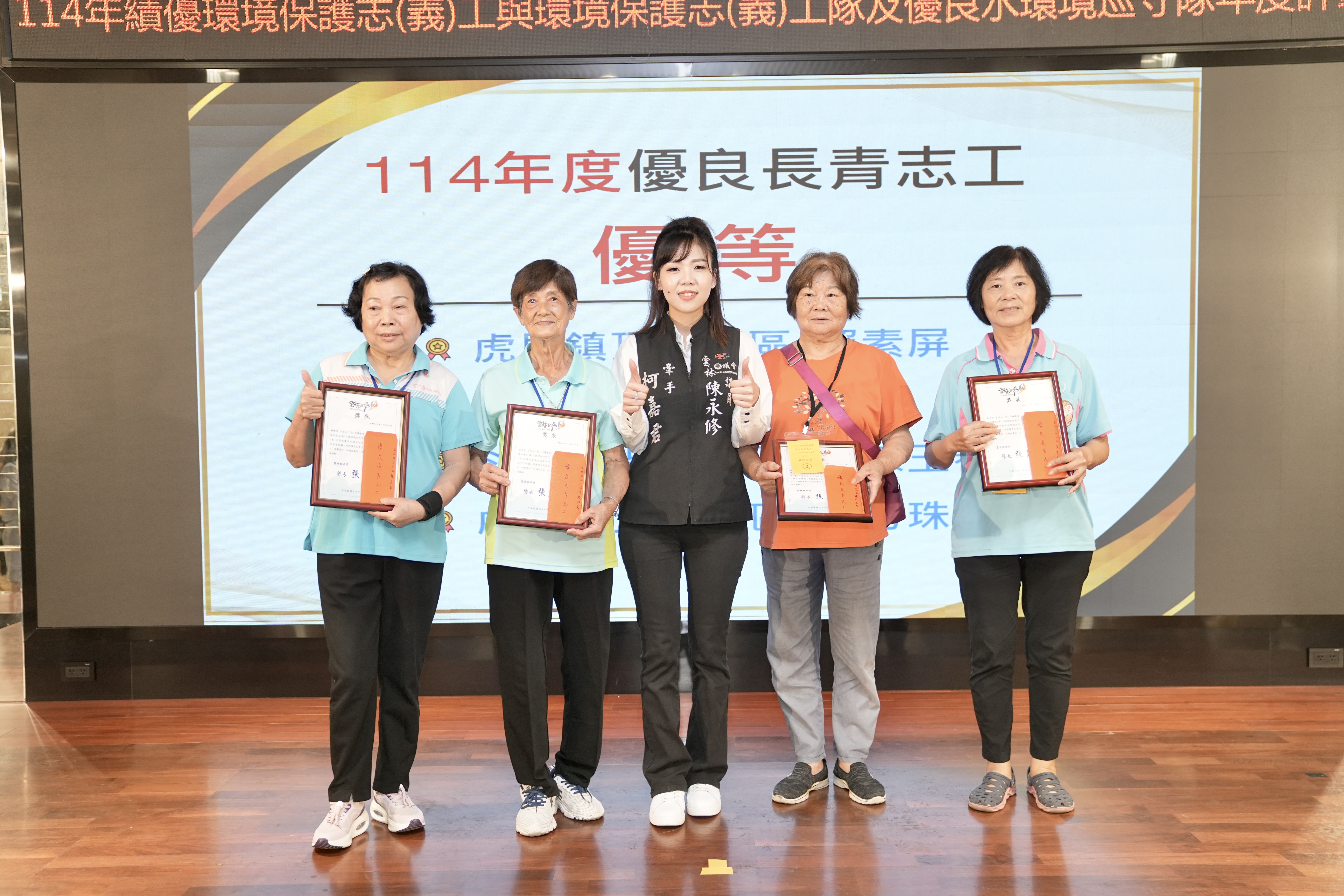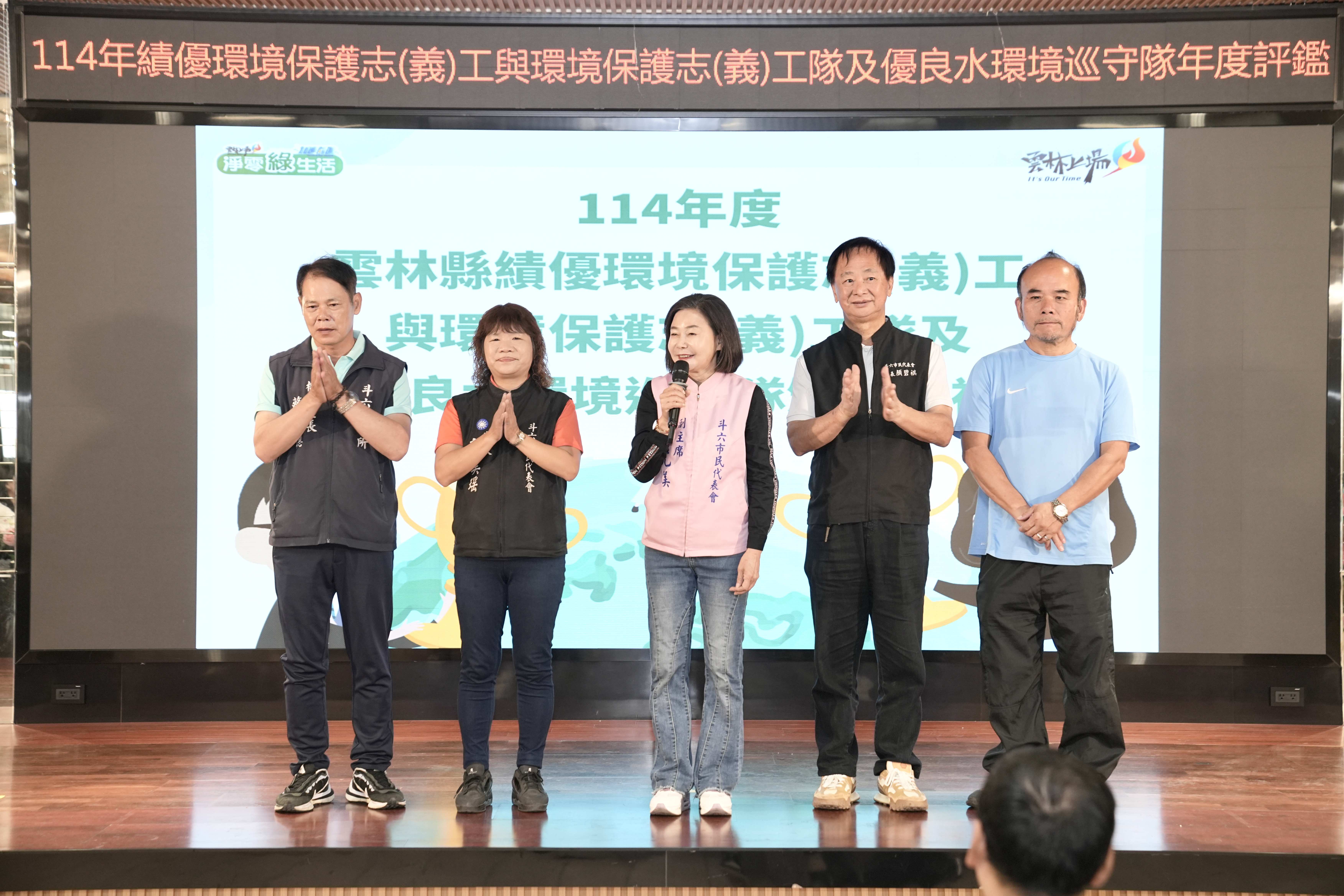 典禮中亦表揚本次代表雲林縣參加114年全國環保志(義)工群英會的優秀隊伍,其中「虎尾鎮立仁社區」榮獲環保金頭腦特優、「虎尾鎮頂溪社區」榮獲資源分類王特優、「斗南鎮田頭社區」榮獲資源灌籃高手特優及「崙背鄉南陽社區」榮獲清掃接力賽特優,志工們在各項競賽表現傑出優異,展現雲林縣滿滿的環保正能量!