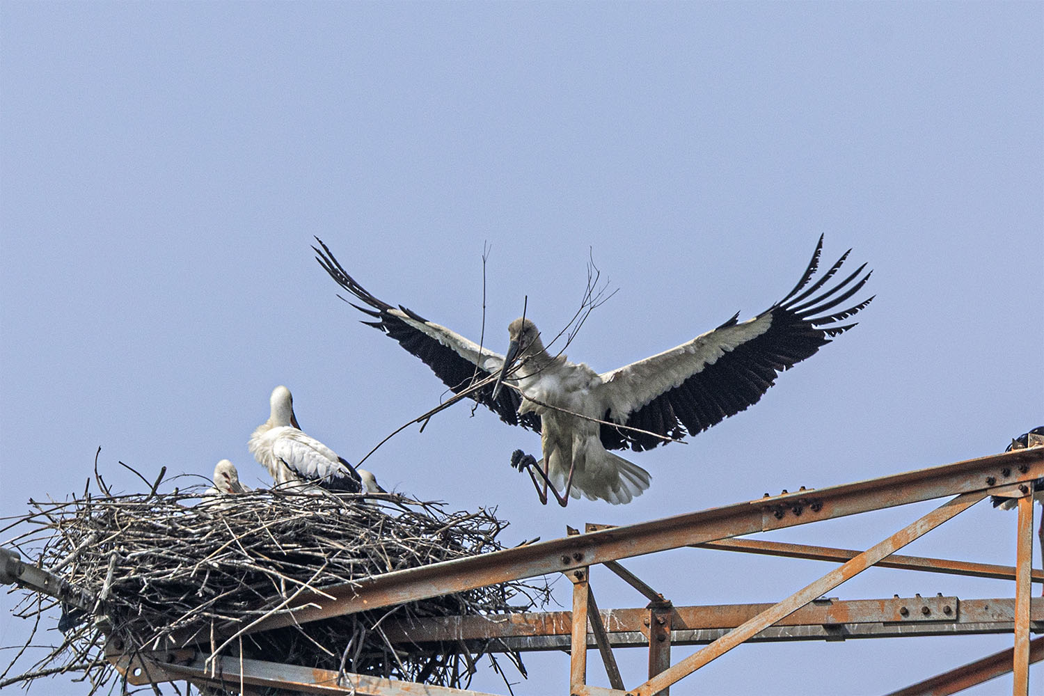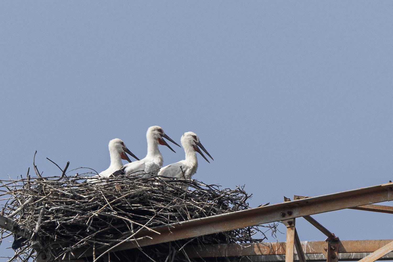 全世界僅餘3,000多隻的瀕危保育類鳥類東方白鸛,近日於雲林縣濁水溪沿岸高壓電塔築巢並成功孵化幼鳥,為台灣首度記錄到於自然環境中完成繁殖,具有重要保育里程碑意義。雲林縣長張麗善今(27)日前往現地關心,在雲林縣野鳥學會吳崇漢監事的專業導覽下,實地了解東方白鸛棲息與繁殖情形,同時檢視濁水溪揚塵防制及環境改善成果。