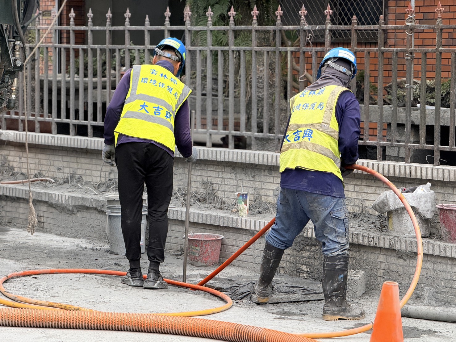 花蓮縣光復鄉因連日豪雨受創嚴重,地方災後復原工作刻不容緩。雲林縣環境保護局於10月8日出動10台高壓沖吸兩用清溝車及專業清溝團隊,跨縣趕赴花蓮光復鄉,支援災後清溝與環境復原作業。團隊抵達後,依現場指揮中心調度,於10月9日正式投入清溝工作,協助清理學士街、敦厚街及林森路等受災嚴重路段。由於積土層厚重、道路受阻,以高壓沖洗結合真空吸泥方式,迅速清除大量泥沙與漂流廢棄物,清溝人員全力動員機具與人力進行清除,當日共完成約105公尺清溝長度,清除積土約19.5公噸,有效改善積水與阻塞情形。