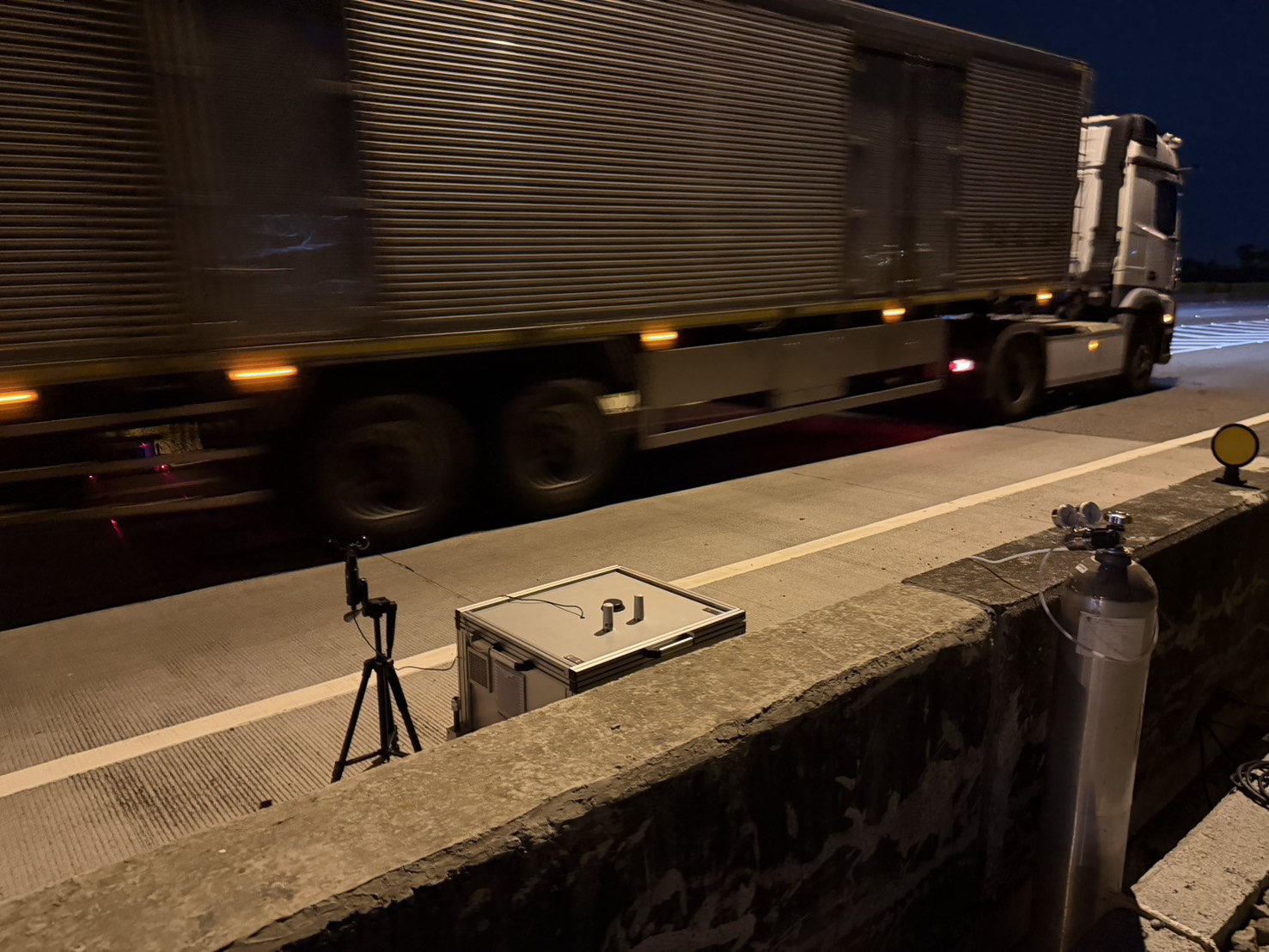 雲林縣環境保護局為強化移動污染源管制,與環境部合作持續運用科技監測技術精進柴油車污染防制,於今(114)年10月8日至10月10日,首度在國道1號斗南地磅站辦理「連續56小時車輛尾氣排煙遙測作業」,成功創下全國首例之紀錄。本次連續監測作業共取得柴油車5,442輛及汽油車256輛之尾氣遙測有效數據,初步分析結果共計133輛柴油車及1輛汽油車有污染之虞,環保局後續將依程序辦理通知到檢,以確保車輛排放符合標準。